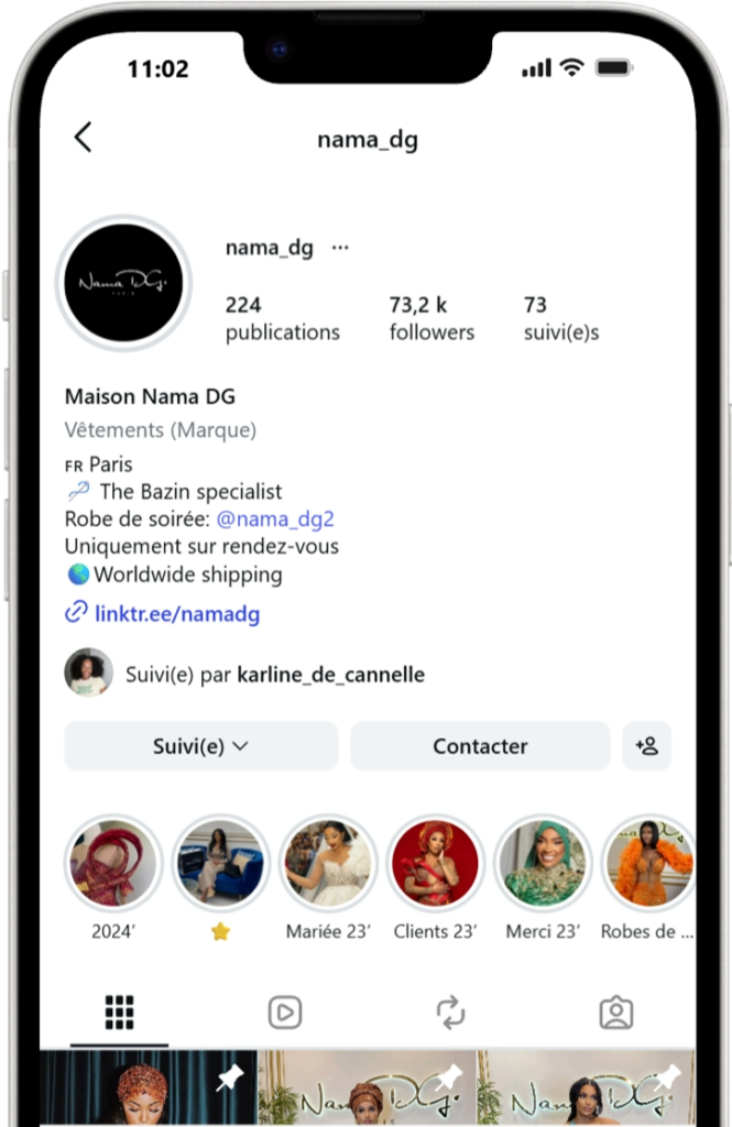 Nama DG révèle le Bazin sous un nouveau regard : noble, puissant et résolument moderne. Chaque création porte l’empreinte d’une élégance singulière.