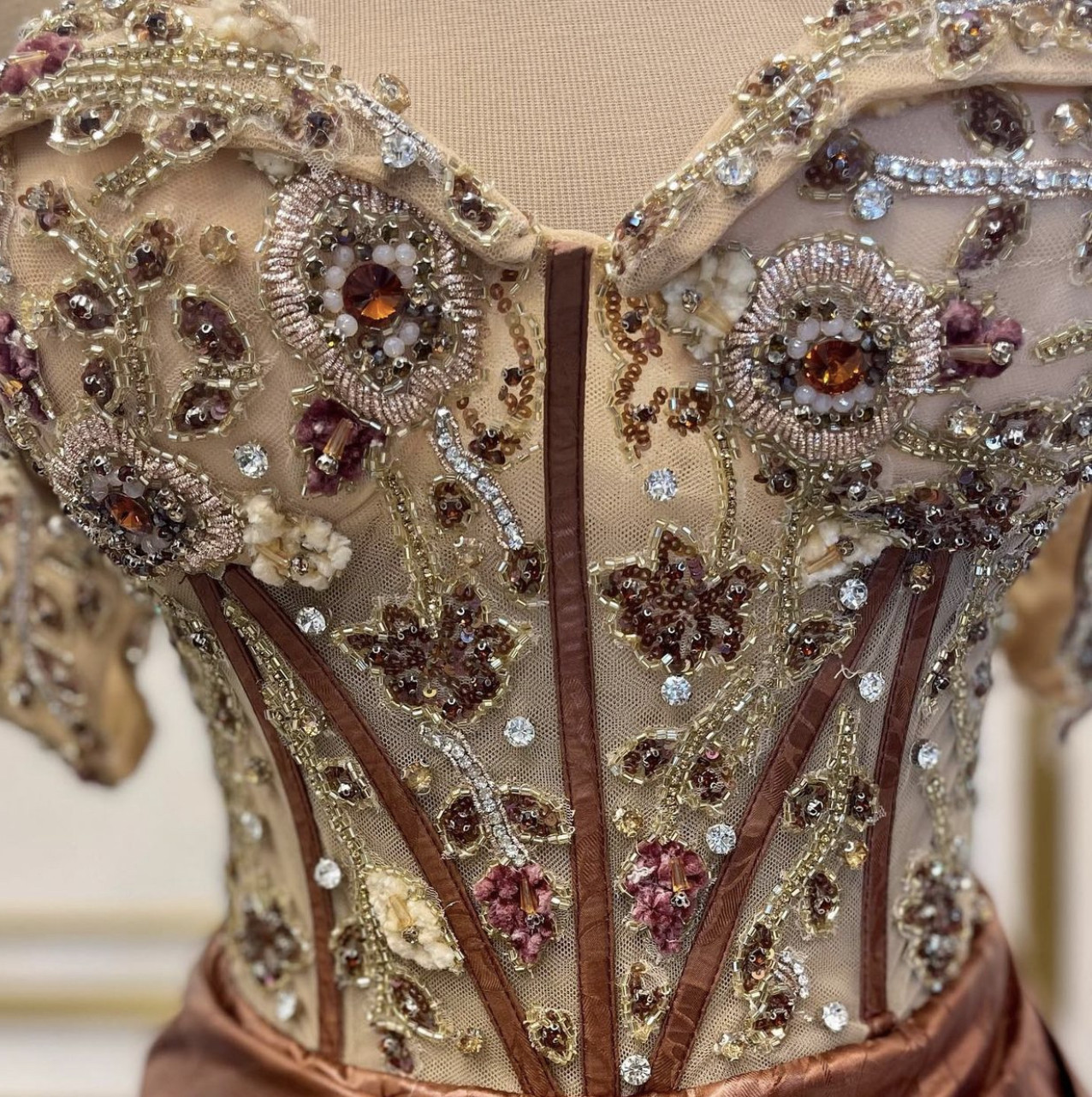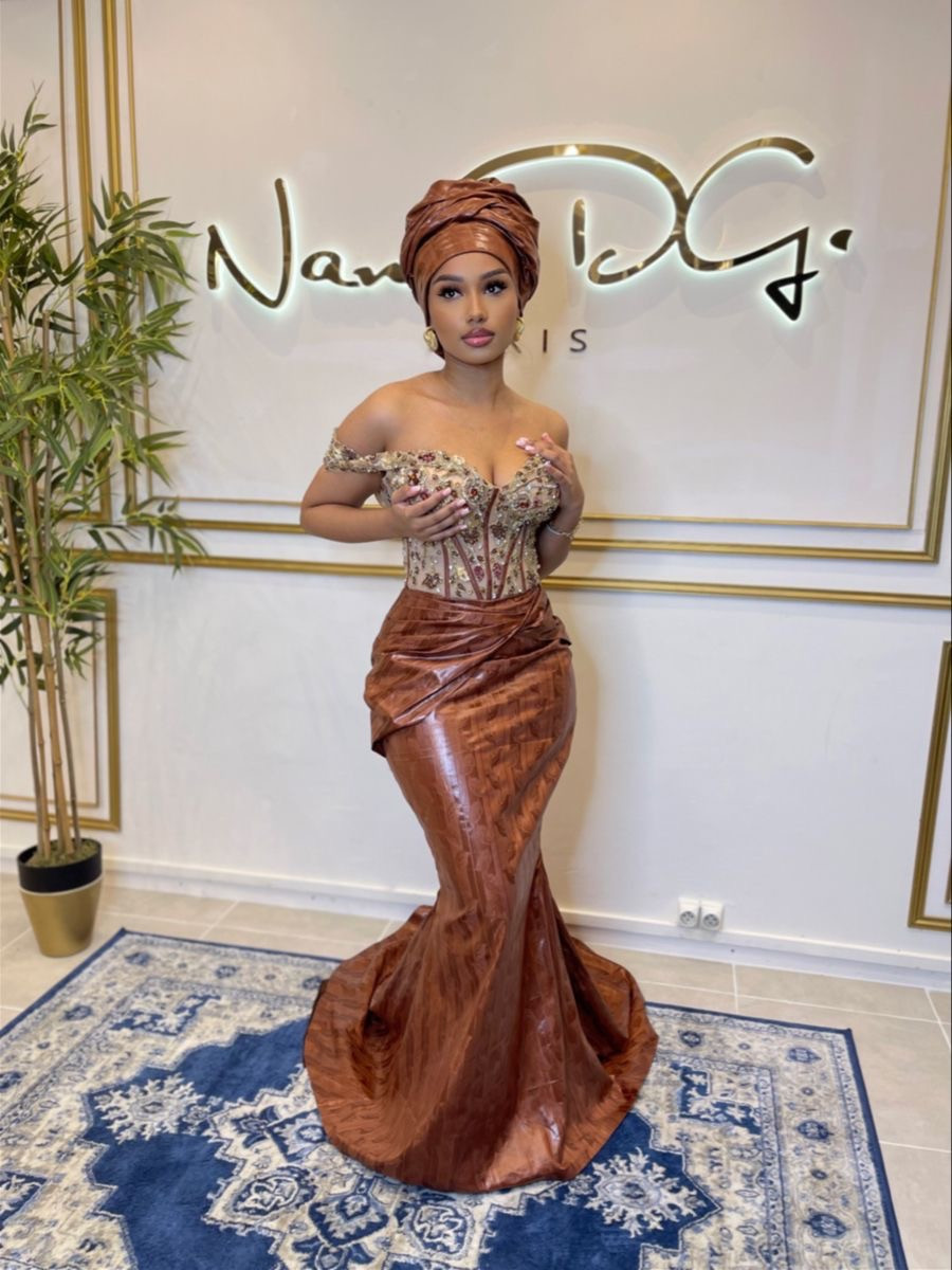 Il y’a 7 reines noires qui ont marquées l’histoire, j’ai voulu représenter à travers cette robe la reine de Saba. Elle est reconnue pour sa beauté, sa sagesse, et son courage.